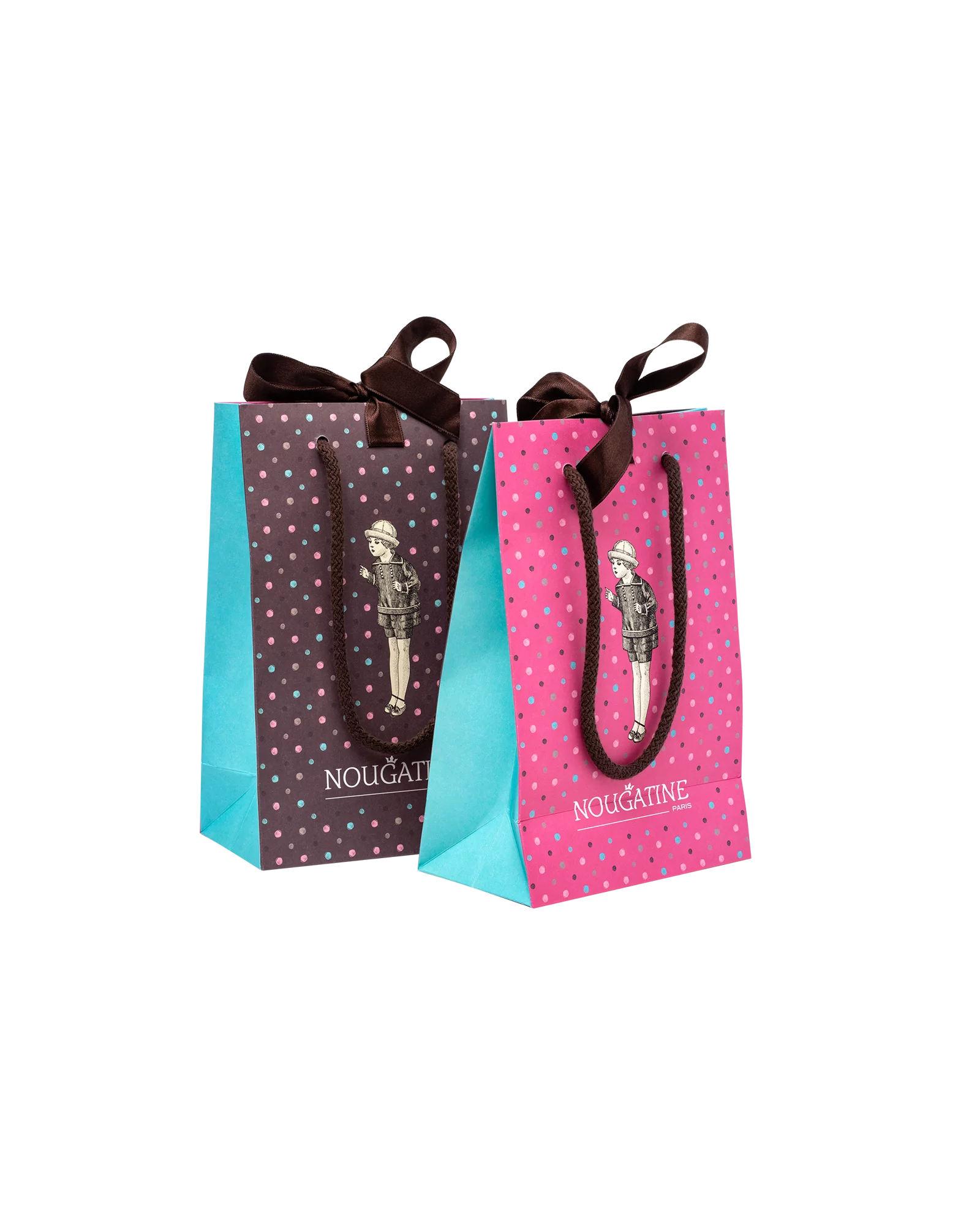 Красочный бумажный пакет с сатиновыми лентами